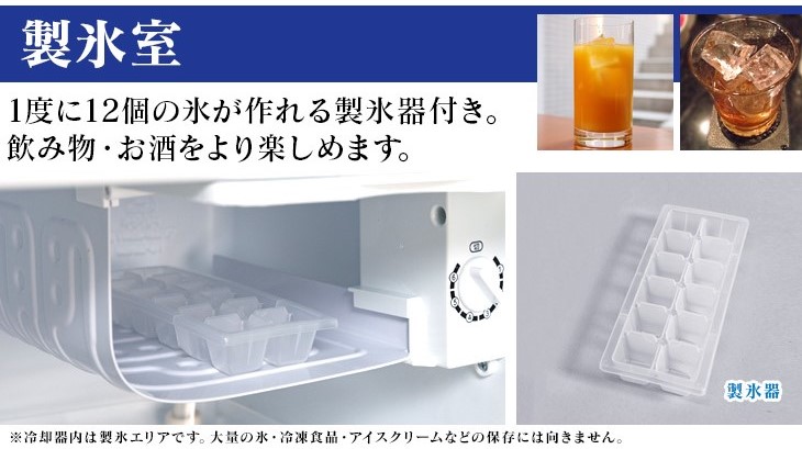 製氷室が付いてるため、飲み物・お酒などをより楽しめる!
