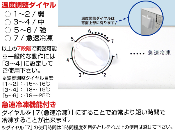 製品の詰め込み過ぎは冷気が充分に回らない場合がございますので8割程度の内容量でお使いください。